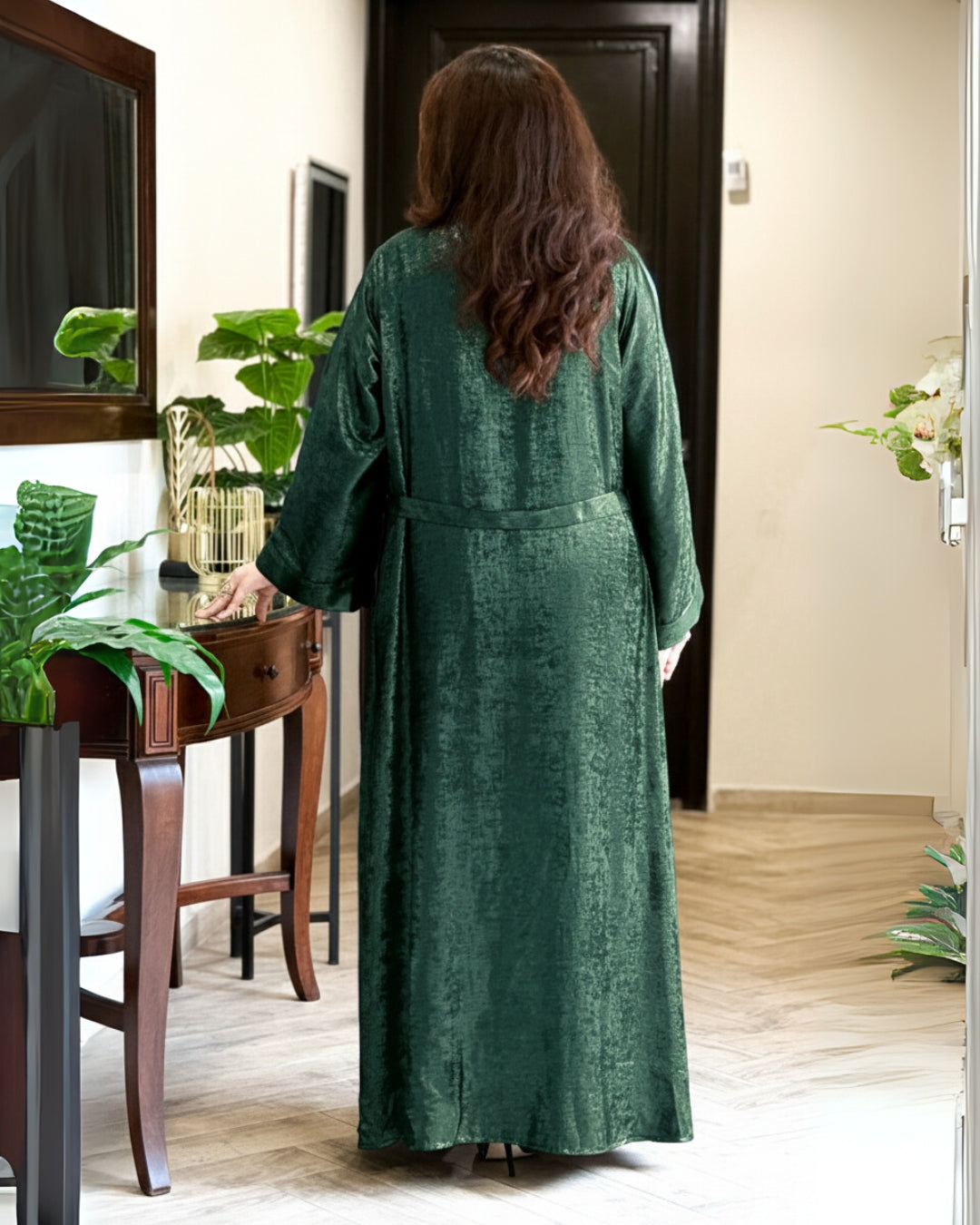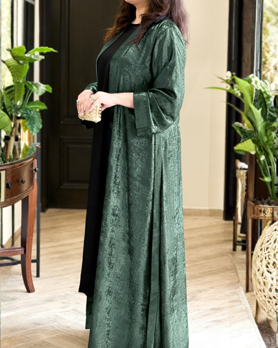 The open-front silhouette and matching belt offer effortless versatility wear it free for a graceful, flowing aura or cinch it for a refined, modern fit. Designed for evening celebrations, grand events, and elevated festive wear, Jade Eclipse redefines luxury through subtle power and poised allure.