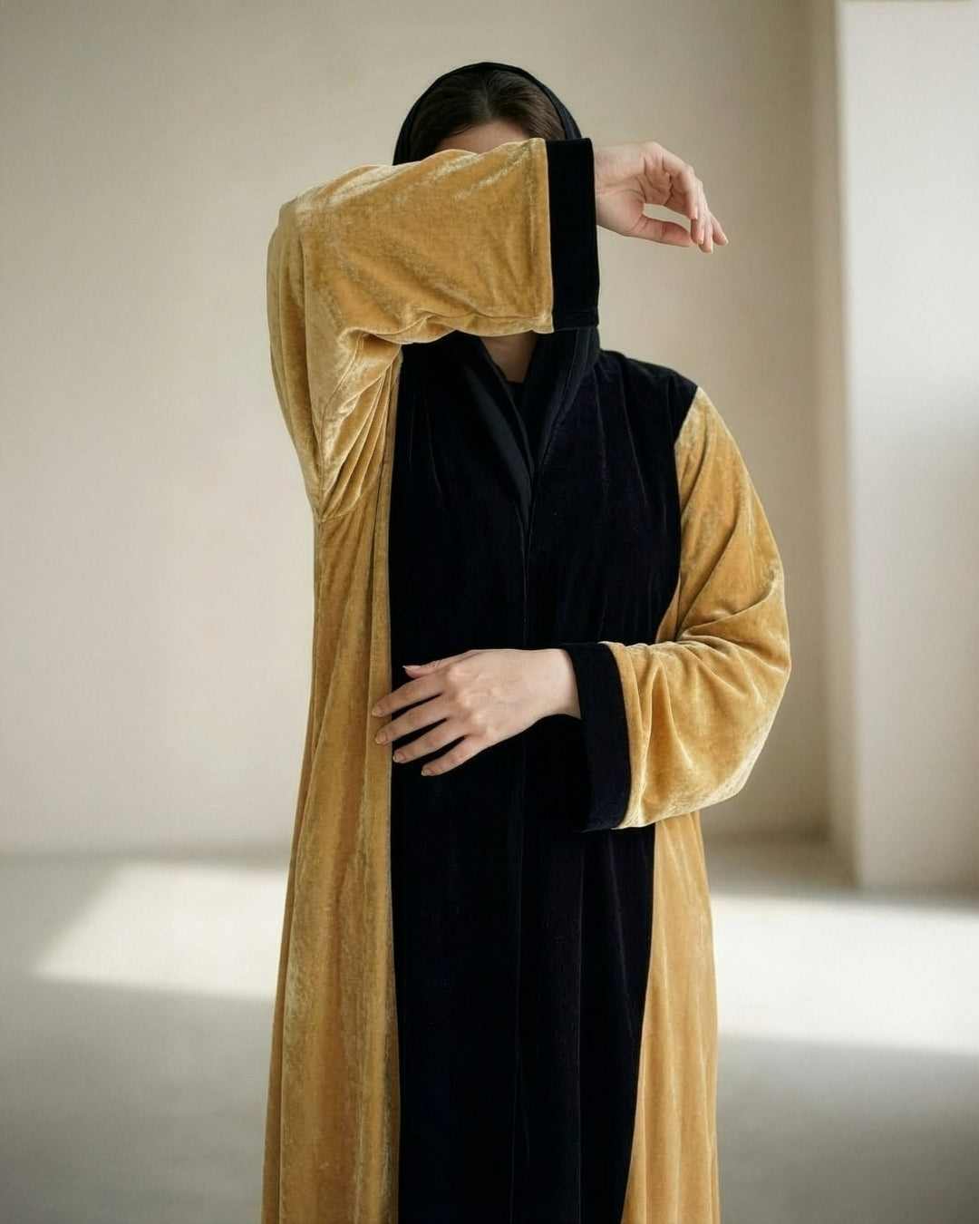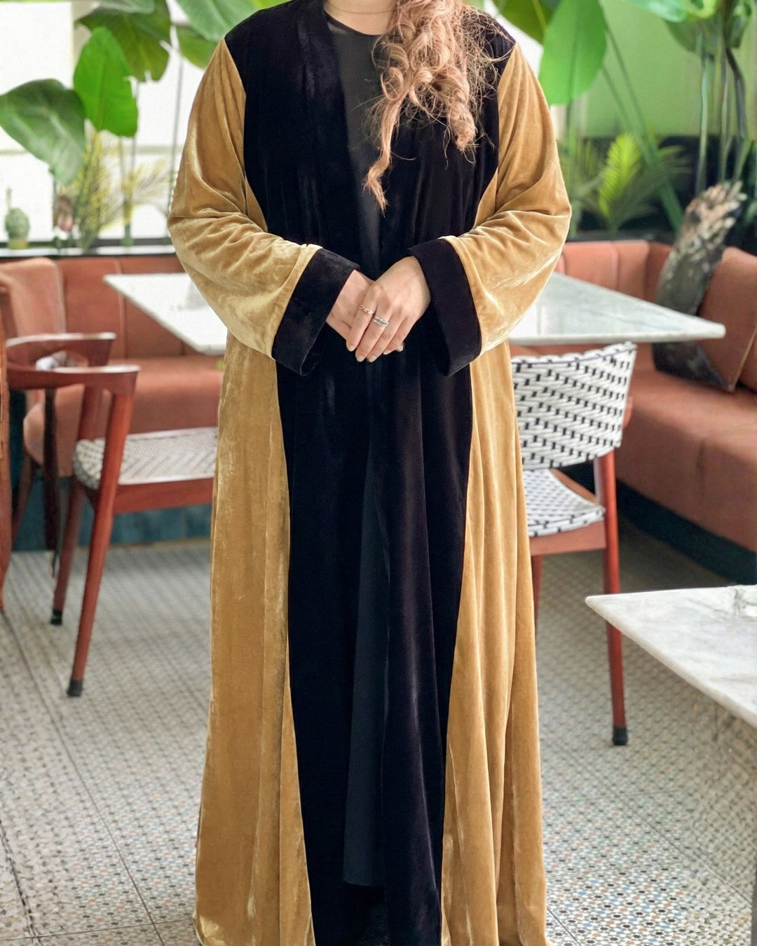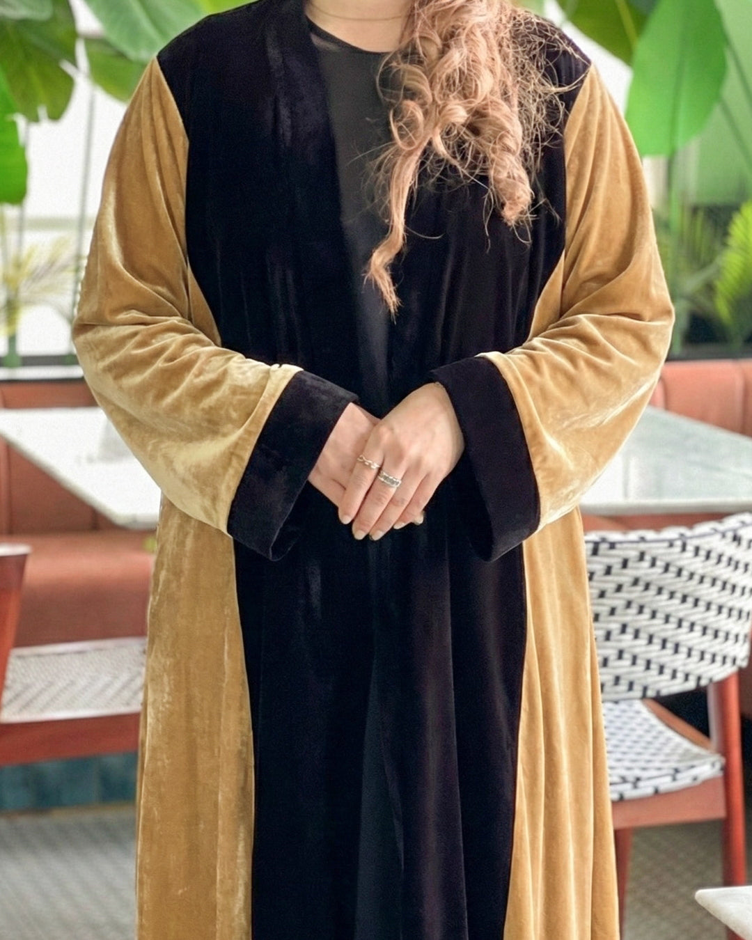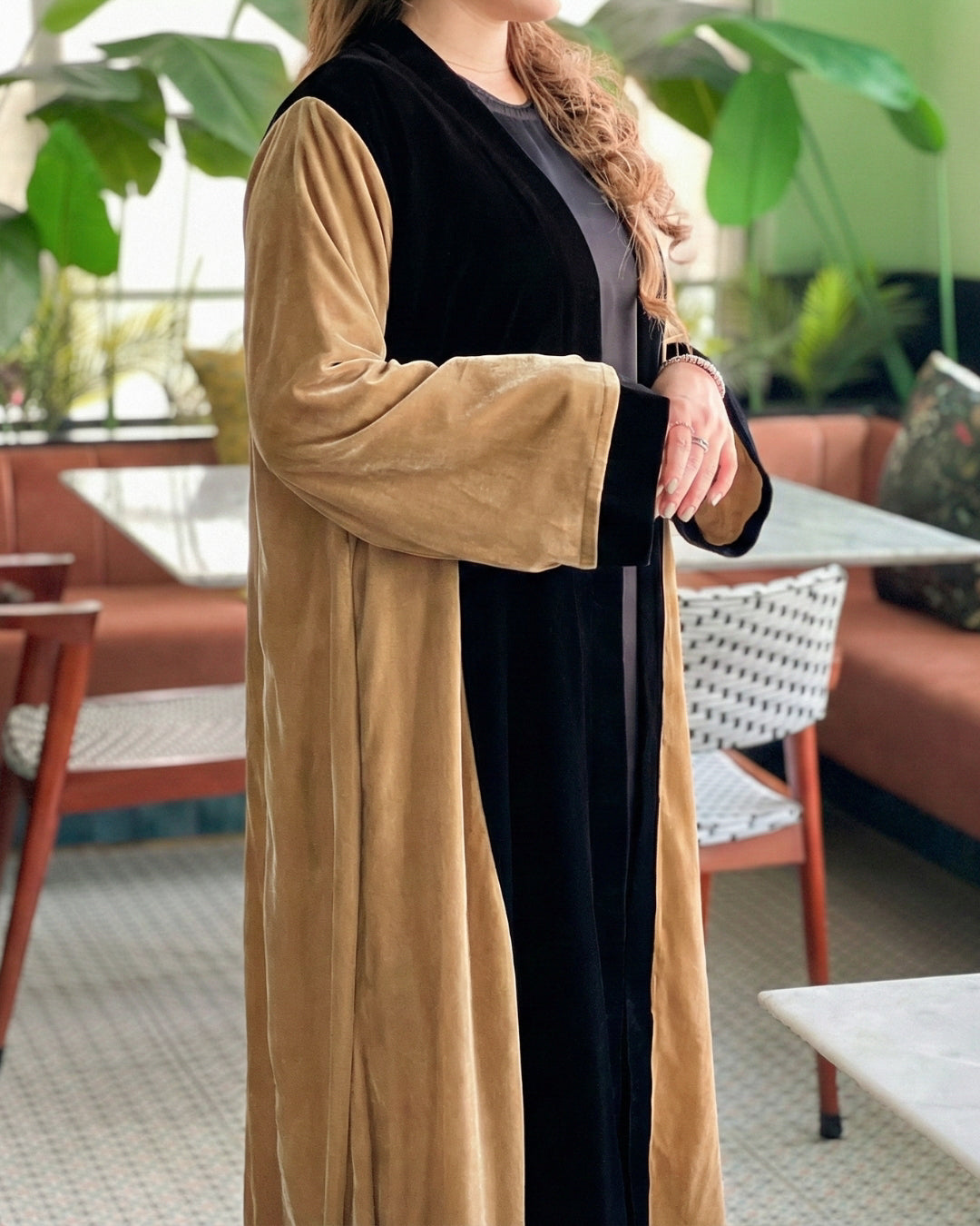 Our Mocha Muse gown, crafted in premium soft velvet, balances plush comfort with an understated, earthy charm. The soothing light brown and black color-block design creates a sophisticated, neutral contrast that is versatile enough for any occasion. Perfect for high tea or evening gatherings, this gown ensures you look polished, graceful, and effortlessly stylish.