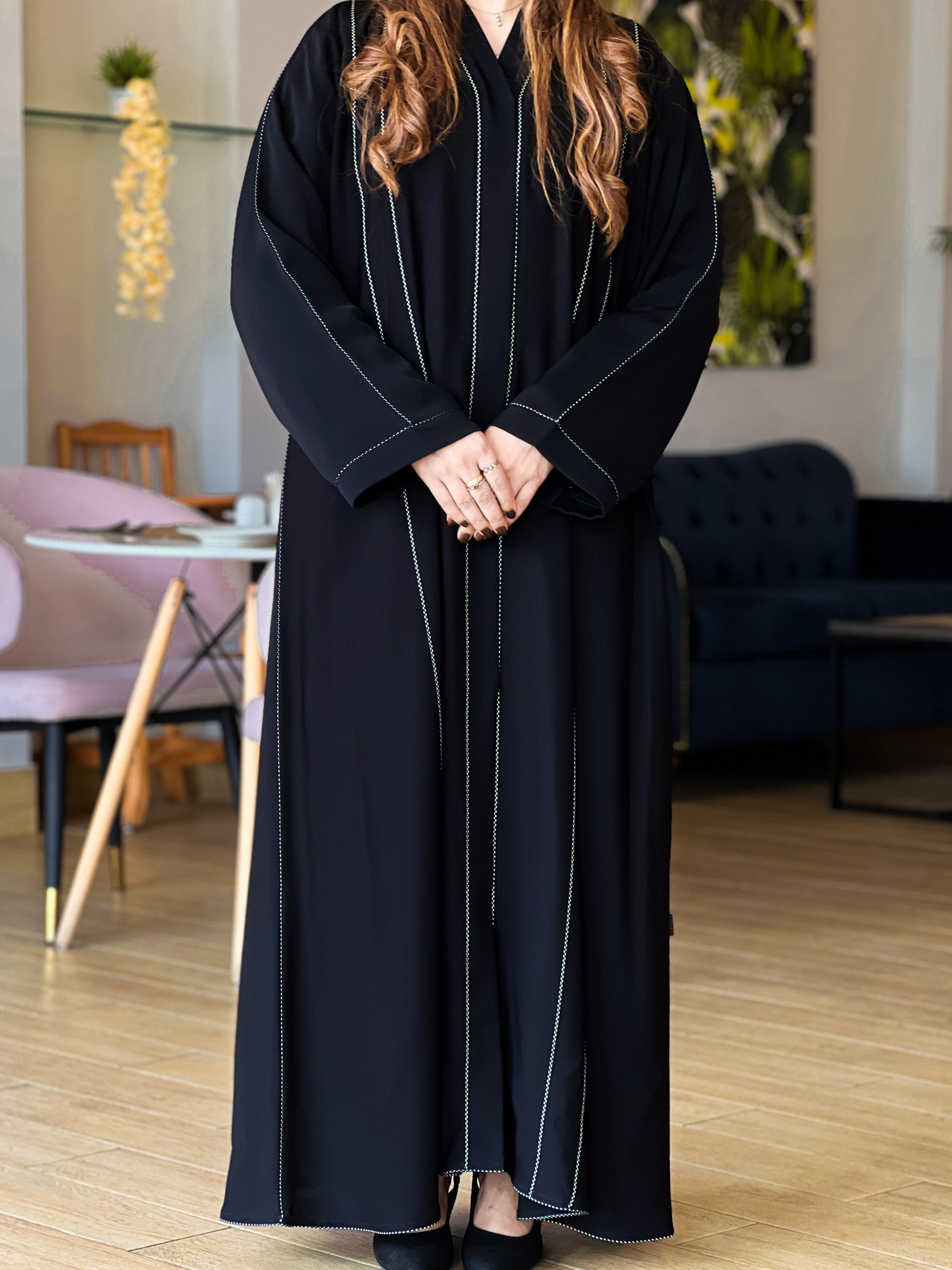 Step into refined sophistication with this black abaya, crafted from authentic Korean Nida fabric for a luxurious drape and effortless movement.