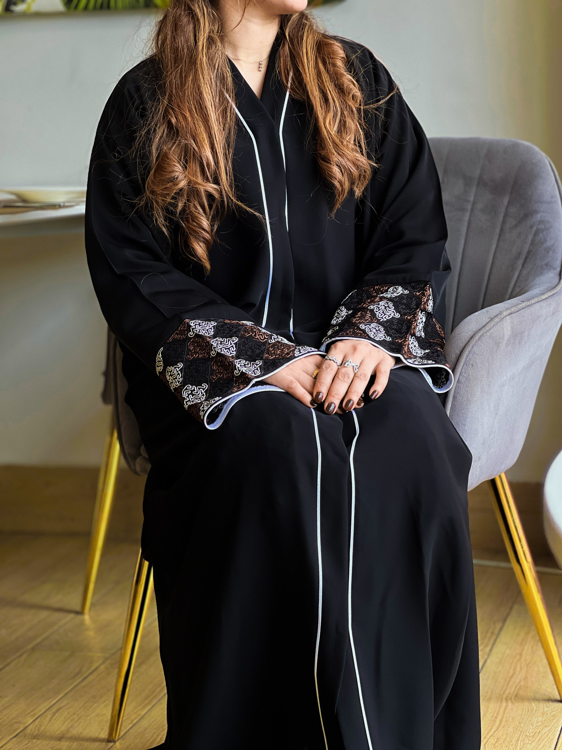 Delicate embroidery on the sleeves adds a refined touch of artistry, blending modesty with style. Ideal for both casual and semi-formal occasions, this abaya brings effortless elegance to your wardrobe.