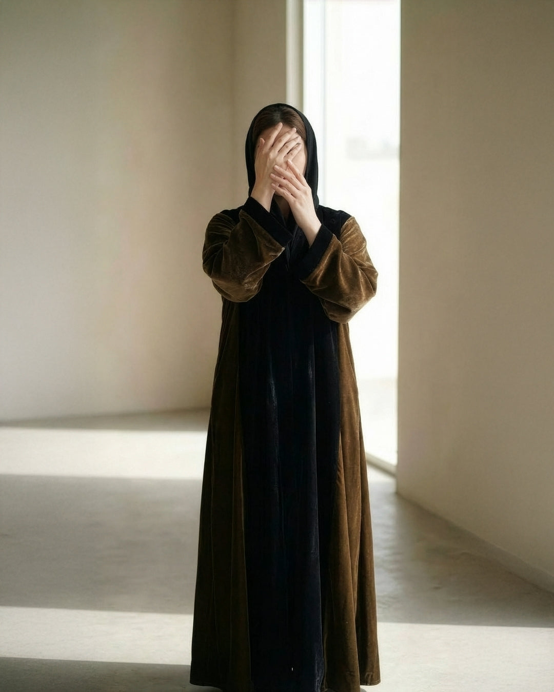 Our Sable Dusk gown, crafted in premium soft velvet, offers a luxurious warmth and a fluid, flattering drape. The rich sable brown and black color-block design adds a touch of earthy sophistication, creating a timeless silhouette that feels both grounded and glamorous. Perfect for evening galas or cozy winter gatherings, this gown ensures you look elegant, serene, and effortlessly chic.
