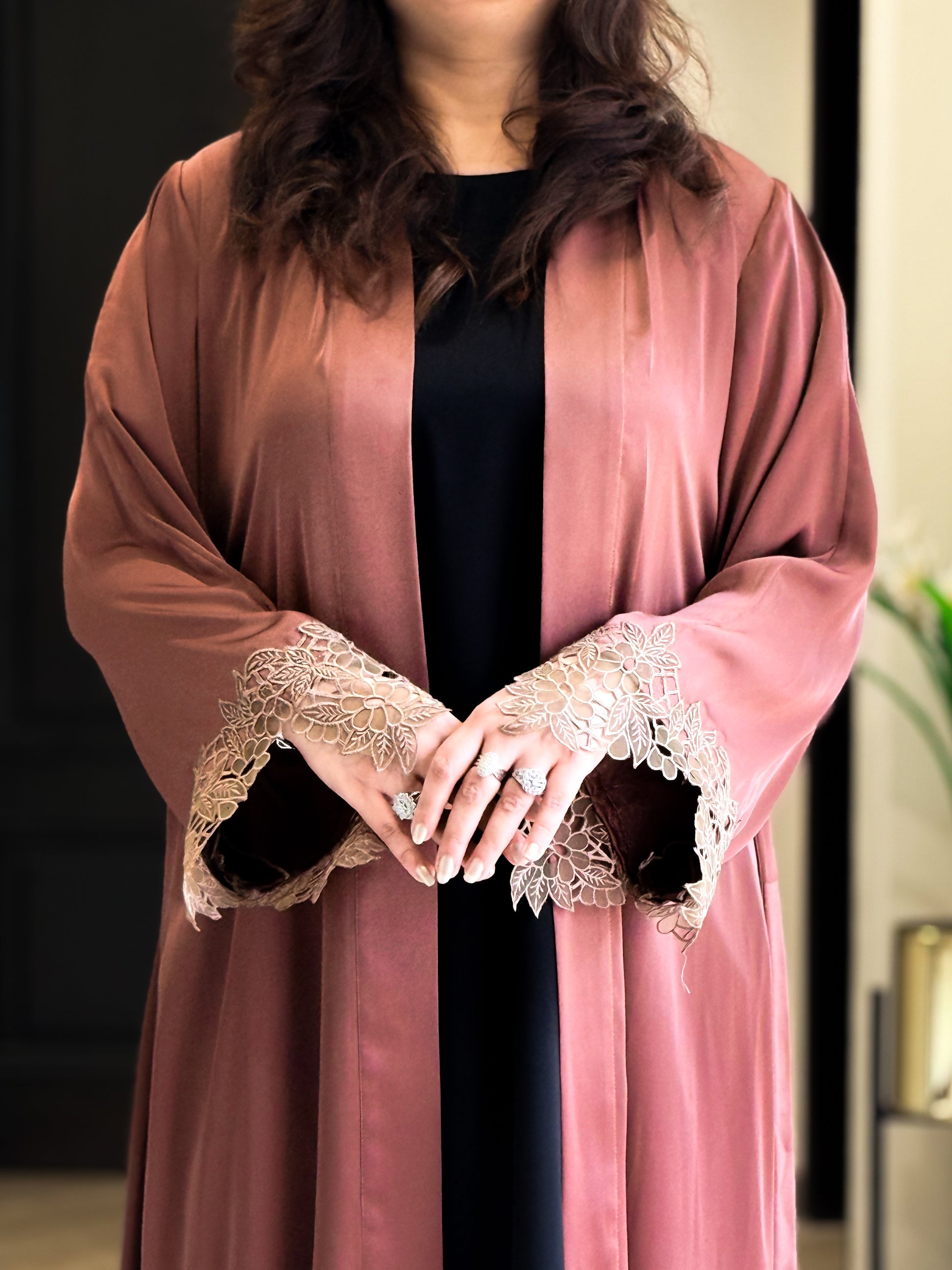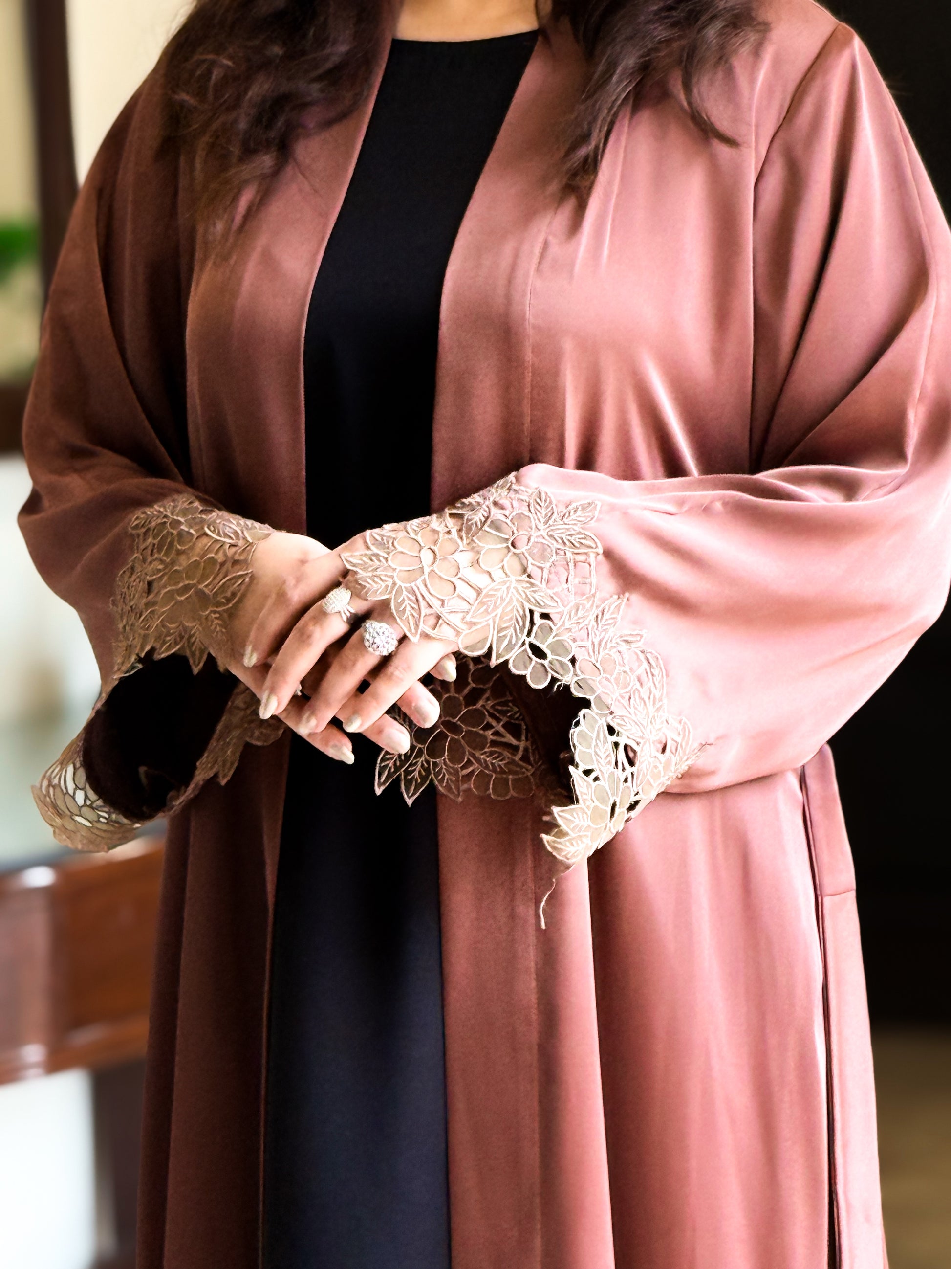 Refined and timeless, our Rosewood Silk Blend Abaya is crafted from a premium mix of satin silk and Korean silk, giving it a smooth, lustrous finish with a graceful drape.