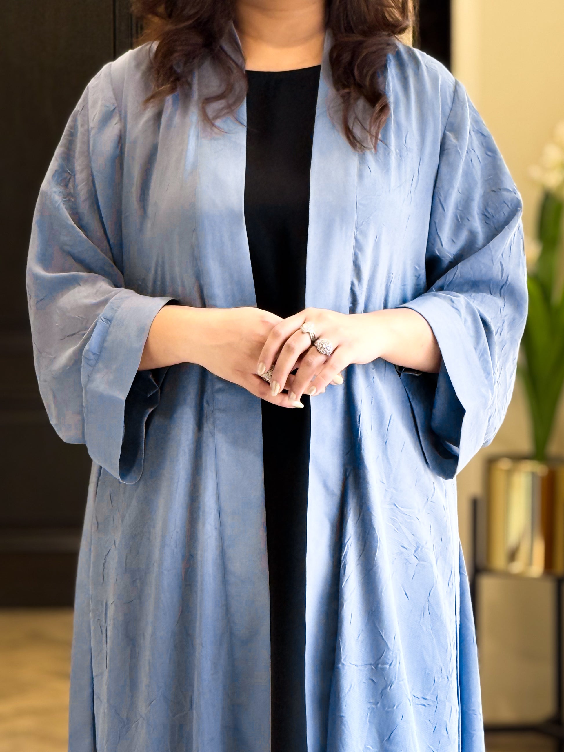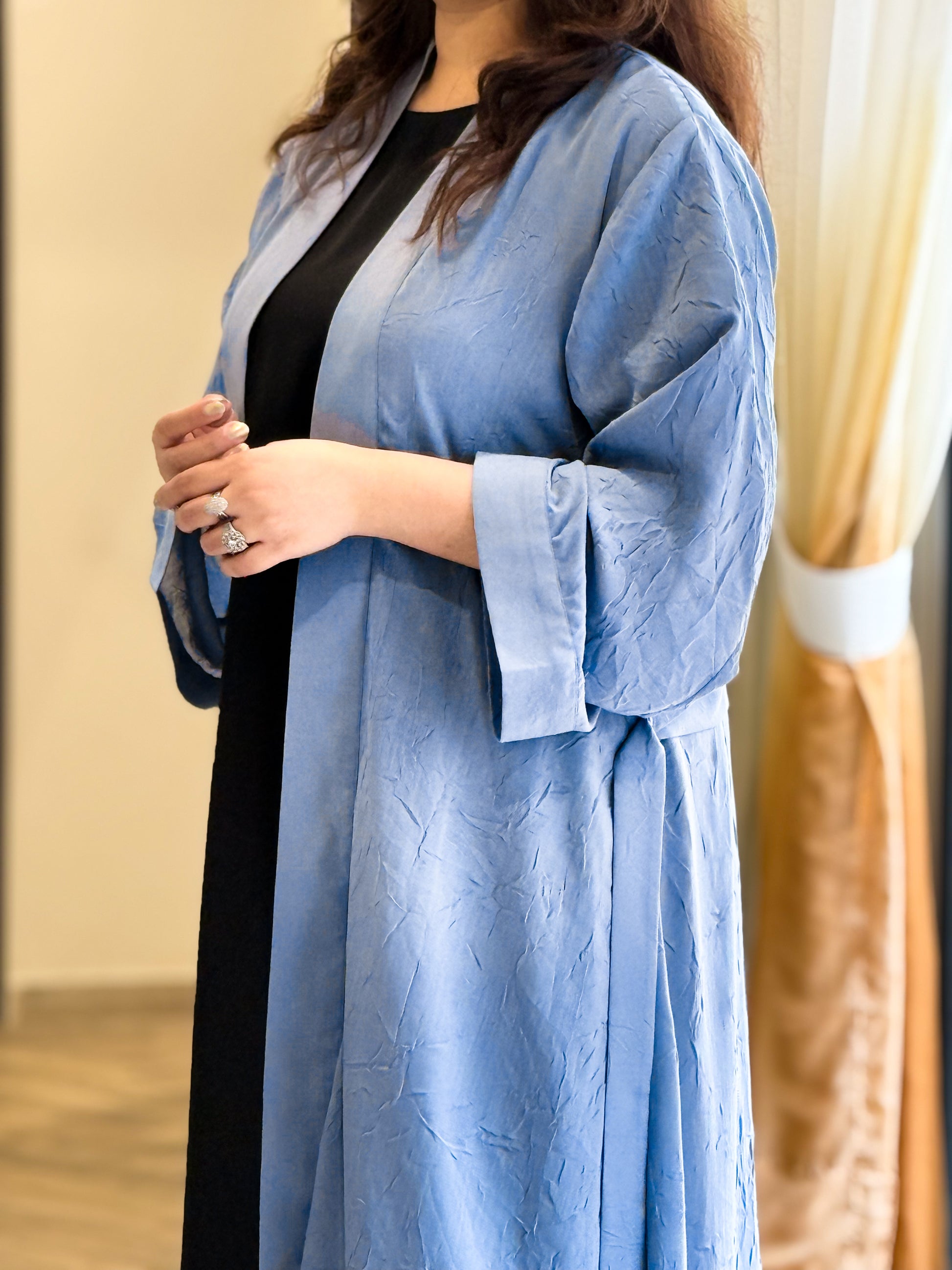 Relaxed and stylish, our Sky Blue Crushed Georgette Abaya is designed for effortless everyday wear. Made from lightweight crushed georgette, it features a naturally textured finish that adds a modern touch while keeping the look casual and breathable.